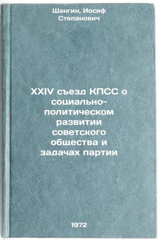 In Russian. Shangin, Iosif Stepanovich. XXIV Congress of the CPSU on the social and political development of Soviet society and the tasks of the Party. Leningrad: 1972. XXIV sezd KPSS o sotsialno-politicheskom razvitii sovetskogo obshchestva i zadachakh partii. In Russian/XXIV Congress of the CPSU on the Social and Political Development of Soviet Society and the Partys Tasks. All images are for identification of editions only. Several books of the same edition may be available. Please feel free to request photos of available books. SKU7091689