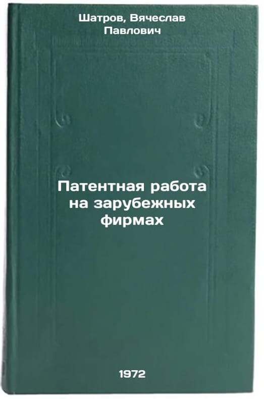 In Russian. Shatrov, Vyacheslav Pavlovich. Patent work at foreign firms. Moscow: 1972. Patentnaya rabota na zarubezhnykh firmakh. In Russian/Patent work in foreign firms. All images are for identification of editions only. Several books of the same edition may be available. Please feel free to request photos of available books. SKU7092599