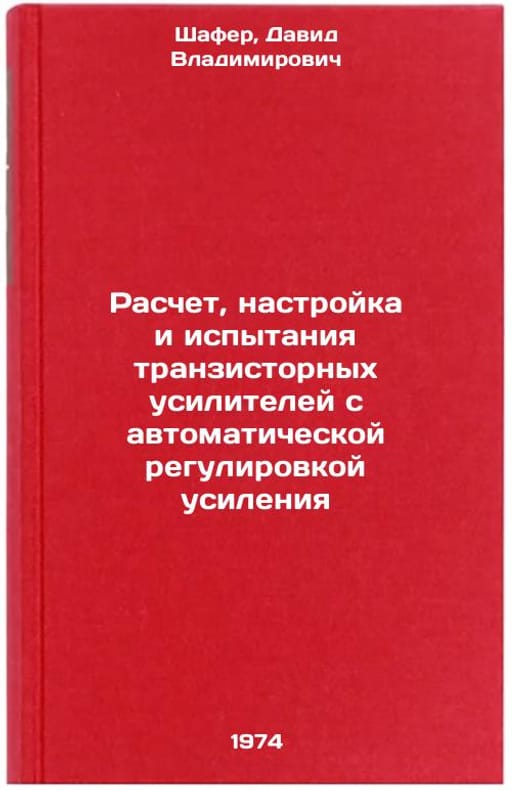 In Russian. Shafer, David Vladimirovich. Calculation, tuning, and testing of automatic amplifiers. Moscow: Communications, 1974. Raschet, nastroyka i ispytaniya tranzistornykh usiliteley s avtomaticheskoy regulirovkoy usileniya. In Russian /Calculation, tuning, and testing of automatic amplifiers. All images are for identification of editions only. Several books of the same edition may be available. Please feel free to request photos of available books. SKU7092700