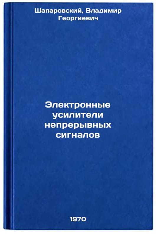 In Russian. Shaparovsky, Vladimir Georgievich. Electronic amplifiers for continuous signals. Kiev: 1970. Elektronnye usiliteli nepreryvnykh signalov. In Russian /Electronic amplifiers for continuous signals . All images are for identification of editions only. Several books of the same edition may be available. Please feel free to request photos of available books. SKU7094177
