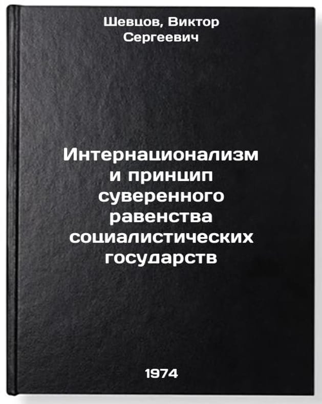 In Russian. Shevtsov, Viktor Sergeevich. Internationalism and the principle of sovereign equality of socialist states. Moscow: Znanie, 1974. Internatsionalizm i printsip suverennogo ravenstva sotsialisticheskikh gosudarstv. In Russian /Internationalism and the principle of the sovereign equality of socialist states. All images are for identification of editions only. Several books of the same edition may be available. Please feel free to request photos of available books. SKU7094370