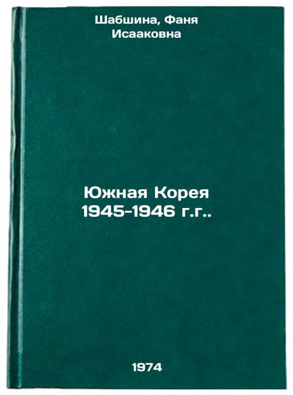In Russian. Shabshina, Fanya Isaakovna. South Korea 1945-1946. Moscow: Science, 1974. All images are for identification of editions only. Several books of the same edition may be available. Please feel free to request photos of available books. SKU7095202