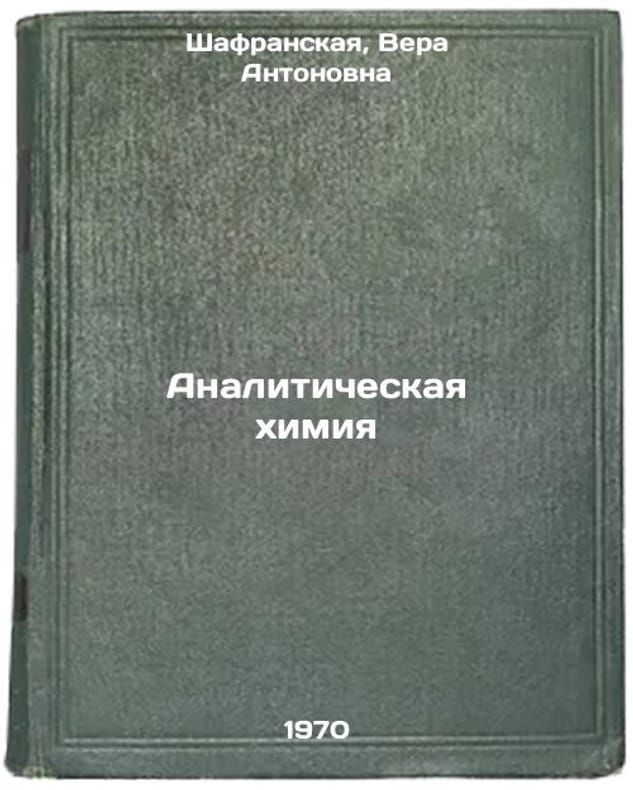 In Russian. Shafranskaya, Vera Antonovna. Analytical Chemistry. Leningrad: 1970. All images are for identification of editions only. Several books of the same edition may be available. Please feel free to request photos of available books. SKU7096212
