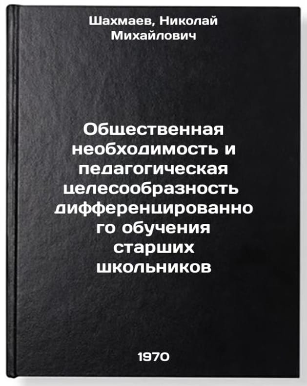 In Russian. Shakhmaev, Nikolai Mikhailovich. Public Necessity and Educational Expediency of Differential Education of Senior Pupils. Moscow: 1970. Obshchestvennaya neobkhodimost' i pedagogicheskaya tselesoobraznost' differentsirovannogo obucheniya starshikh shkol'nikov. In Russian /The societal necessity and pedagogical expediency of differentiated education for high school students . All images are for identification of editions only. Several books of the same edition may be available. Please feel free to request photos of available books. SKU7096317