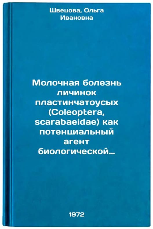 In Russian. Shvetsova, Olga Ivanovna. Milk disease of plate larvae (Coleoptera, scarabaeidae) as a potential agent of biological warfare. Moscow: 1972. Molochnaya bolezn lichinok plastinchatousykh (Coleoptera, scarabaeidae) kak potentsialnyy agent biologicheskoy borby. In Russian/Milk disease of plate larvae (Coleoptera, scarabaeidae) as a potential biological control agent. All images are for identification of editions only. Several books of the same edition may be available. Please feel free to request photos of available books. SKU7096332