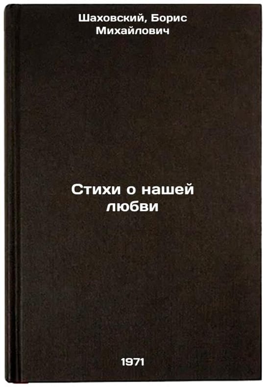 In Russian. Shakhovsky, Boris Mikhailovich. Poems about Our Love. Moscow: Art Lit., 1971. All images are for identification of editions only. Several books of the same edition may be available. Please feel free to request photos of available books. SKU7096996