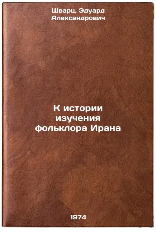 "Short description: In Russian. Schwartz, Eduard Alexandrovich. Towards the History of Studying Iranian Folklore. Dushanbe: Donish, 1974. K istorii izucheniya fol'klora Irana. In Russian /Towards the History of Iranian Folklore. All images are for identification of editions only. Several books of the same edition may be available. Please feel free to request photos of available books. SKU7097135"