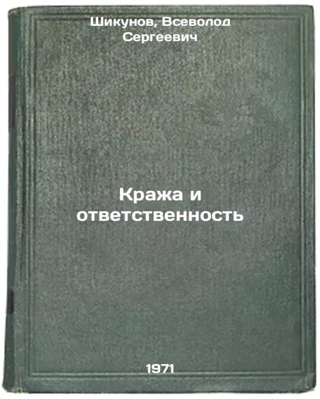 In Russian. Shikunov, Vsevolod Sergeevich. Theft and Liability. Minsk: Science and Technology, 1971. All images are for identification of editions only. Several books of the same edition may be available. Please feel free to request photos of available books. SKU7099188
