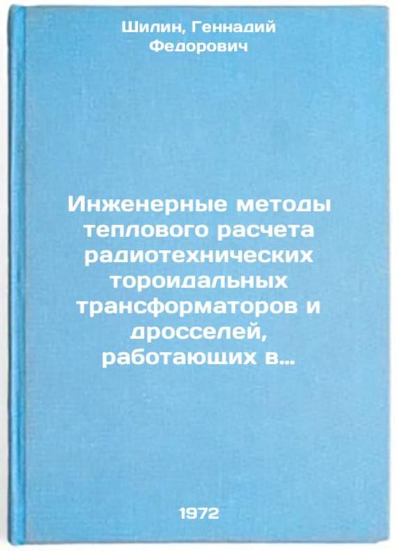 In Russian. Shilin, Gennady Fedorovich. Engineering methods of thermal calculation of radio-technical toroidal transformers and throttles operating in non-stationary modes. Omsk: 1972. Inzhenernye metody teplovogo rascheta radiotekhnicheskikh toroidalnykh transformatorov i drosseley, rabotayushchikh v nestatsionarnykh rezhimakh. In Russian/Engineering methods for thermal calculation of radio-technical toroidal transformers and throttles operating in non-stationary modes. All images are for identification of editions only. Several books of the same edition may be available. Please feel free to request photos of available books. SKU7099237