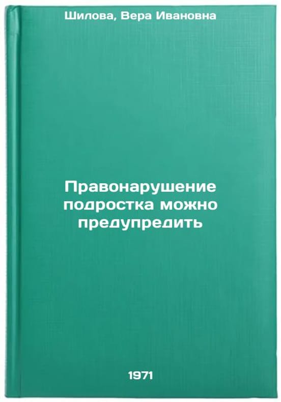 In Russian. Shilova, Vera Ivanovna. Juvenile delinquency can be prevented. Leningrad: 1971. Pravonarushenie podrostka mozhno predupredit'. In Russian /Juvenile delinquency can be prevented . All images are for identification of editions only. Several books of the same edition may be available. Please feel free to request photos of available books. SKU7099317