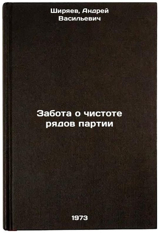 In Russian. Shiryaev, Andrei Vasilyevich. Care for the purity of the Partys ranks. Moscow: Moscow Worker, 1973. All images are for identification of editions only. Several books of the same edition may be available. Please feel free to request photos of available books. SKU7099998