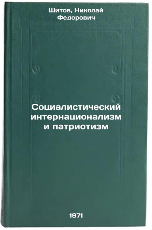 In Russian. Shitov, Nikolai Fedorovich. Socialist Internationalism and Patriotism. Moscow: Politizdat, 1971. Sotsialisticheskiy internatsionalizm i patriotizm. In Russian /Socialist internationalism and patriotism . All images are for identification of editions only. Several books of the same edition may be available. Please feel free to request photos of available books. SKU7100102