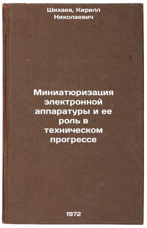 In Russian. Shikhaev, Kirill Nikolaevich. Miniaturization of electronic equipment and its role in technical progress. Moscow: Machine Building, 1972. Miniatyurizatsiya elektronnoy apparatury i ee rol v tekhnicheskom progresse. In Russian/Miniaturization of electronic equipment and its role in technological progress. All images are for identification of editions only. Several books of the same edition may be available. Please feel free to request photos of available books. SKU7100160