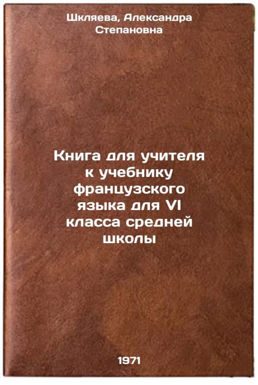 In Russian. Shklyaeva, Alexandra Stepanovna. Teacher's Book to a French Textbook for the VI Grade of Secondary School. Moscow: Enlightenment, 1971. Kniga dlya uchitelya k uchebniku frantsuzskogo yazyka dlya VI klassa sredney shkoly. In Russian /Teacher's Book for a French Language Textbook for the VI Secondary School . All images are for identification of editions only. Several books of the same edition may be available. Please feel free to request photos of available books. SKU7100601