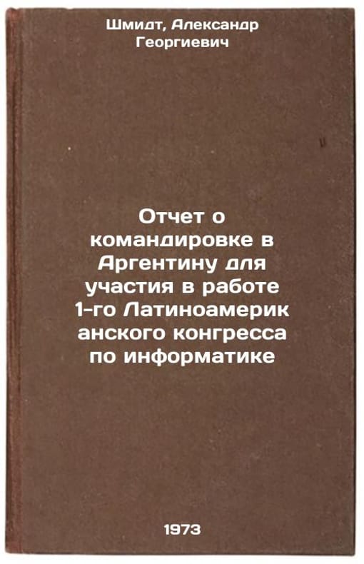 In Russian. Schmidt, Alexander Georgievich. Report on his trip to Argentina to attend the 1st Latin American Congress on Informatics. Moscow: 1973. Otchet o komandirovke v Argentinu dlya uchastiya v rabote 1-go Latinoamerikanskogo kongressa po informatike. In Russian/Report on the mission to Argentina to attend the 1st Latin American Congress on Informatics. All images are for identification of editions only. Several books of the same edition may be available. Please feel free to request photos of available books. SKU7101375
