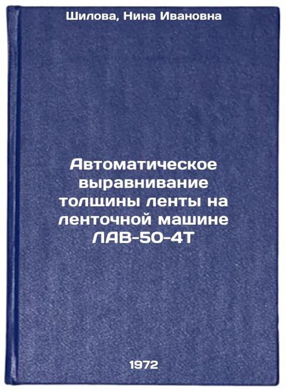 In Russian. Shilova, Nina Ivanovna. Automatic alignment of tape thickness on tape machine LAV-50-4T. Moscow: 1972. Avtomaticheskoe vyravnivanie tolshchiny lenty na lentochnoy mashine LAV-50-4T. In Russian/Automatic alignment of tape thickness on LAV-50-4T tape machine. All images are for identification of editions only. Several books of the same edition may be available. Please feel free to request photos of available books. SKU7102478