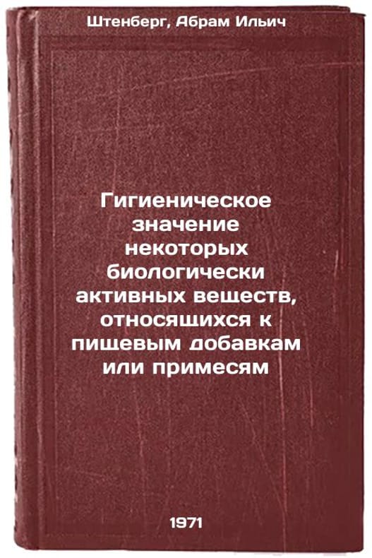 In Russian. Shtenberg, Abram Ilyich. Hygienic value of certain dietary additives or impurities. Tbilisi: Sabchota Sakartvelo, 1971. Gigienicheskoe znachenie nekotorykh biologicheski aktivnykh veshchestv, otnosyashchikhsya k pishchevym dobavkam ili primesyam. In Russian /Hygienic significance of certain dietary additives or impurities . All images are for identification of editions only. Several books of the same edition may be available. Please feel free to request photos of available books. SKU7102854
