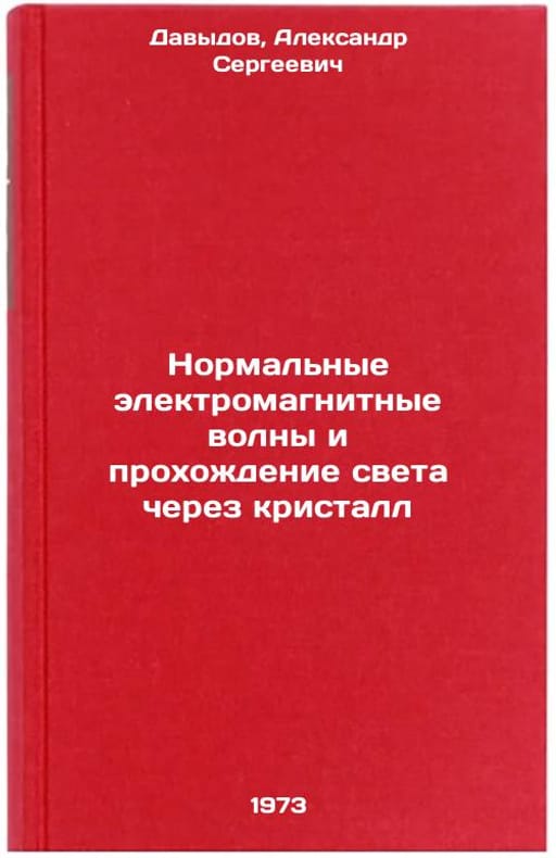 In Russian. Davydov, Alexander Sergeevich. Normal electromagnetic waves and the passage of light through a crystal. Kiev: ITF, 1973. Normalnye elektromagnitnye volny i prokhozhdenie sveta cherez kristall. In Russian/Normal electromagnetic waves and the passage of light through the crystal. All images are for identification of editions only. Several books of the same edition may be available. Please feel free to request photos of available books. SKU7104804