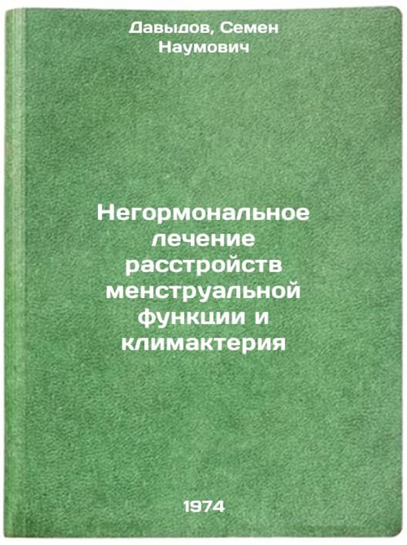 In Russian. Davydov, Semyon Naumovich. Non-hormonal treatment of disorders of menstrual function and menopause. Leningrad: Medicine. Leningrad Division, 1974. Negormonal'noe lechenie rasstroystv menstrual'noy funktsii i klimakteriya. In Russian /Non-hormonal treatment of menstrual disorders and the menopause. All images are for identification of editions only. Several books of the same edition may be available. Please feel free to request photos of available books. SKU7104961