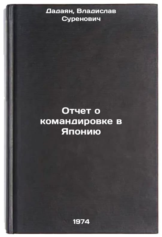In Russian. Dadayan, Vladislav Surenovich. Report on mission to Japan. Moscow: 1974. All images are for identification of editions only. Several books of the same edition may be available. Please feel free to request photos of available books. SKU7105219