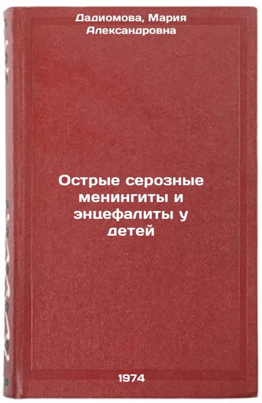 In Russian. Dadiomova, Maria Alexandrovna. Acute serous meningitis and encephalitis in children. Leningrad: Medicine. Leningrad Division, 1974. Ostrye seroznye meningity i entsefality u detey. In Russian /Acute serous meningitis and encephalitis in children. All images are for identification of editions only. Several books of the same edition may be available. Please feel free to request photos of available books. SKU7105238