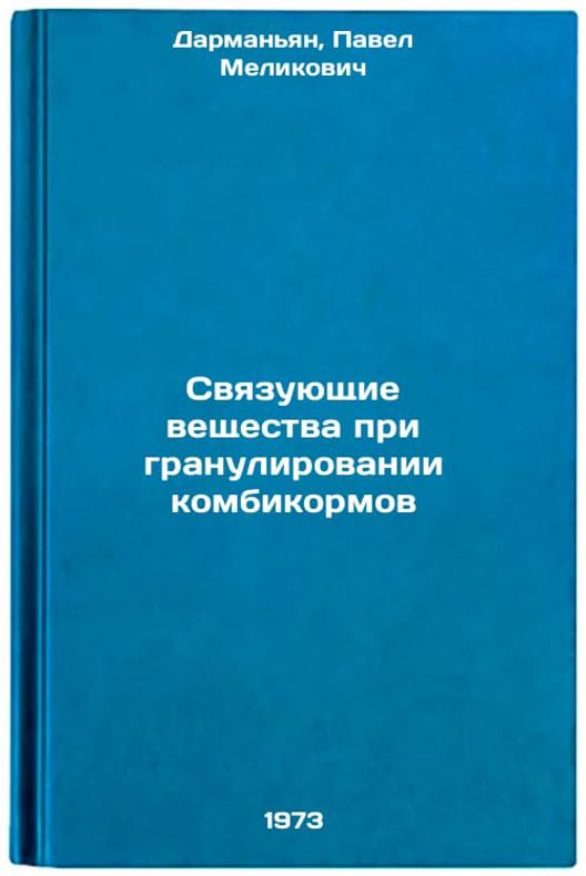 In Russian. Darmanyan, Pavel Melikovich. Binding agents in pelletizing mixed feed. Moscow: 1973. Svyazuyushchie veshchestva pri granulirovanii kombikormov. In Russian/Binding agents in the granulation of mixed feed. All images are for identification of editions only. Several books of the same edition may be available. Please feel free to request photos of available books. SKU7106392