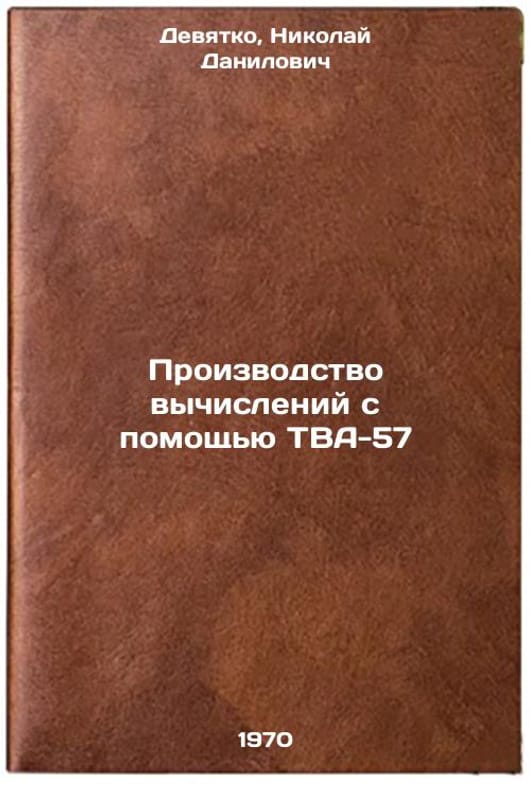 In Russian. Devyatko, Nikolai Danilovich. Computing with TVA-57. Leningrad: 1970. Proizvodstvo vychisleniy s pomoshch'yu TVA-57. In Russian /Computing with TVA-57 . All images are for identification of editions only. Several books of the same edition may be available. Please feel free to request photos of available books. SKU7107232