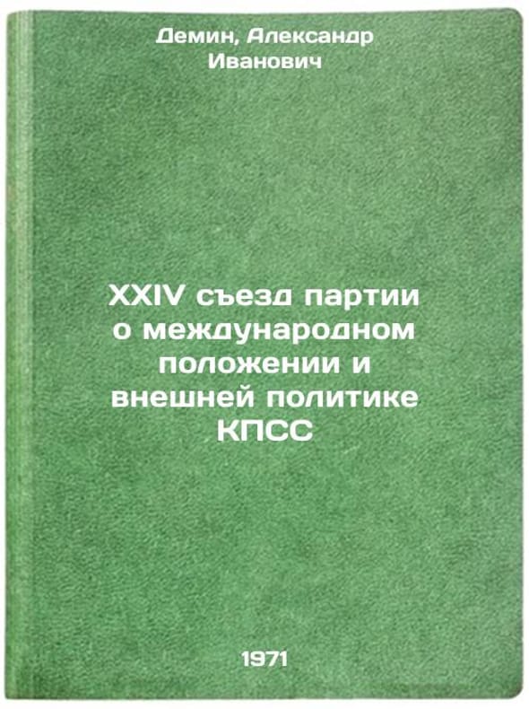 In Russian. Demin, Alexander Ivanovich. XXIV Party Congress on the International Situation and Foreign Policy of the CPSU. Moscow: Znanie, 1971. XXIV sezd partii o mezhdunarodnom polozhenii i vneshney politike KPSS. In Russian /XXIV Party Congress on the International Situation and Foreign Policy of the CPSU . All images are for identification of editions only. Several books of the same edition may be available. Please feel free to request photos of available books. SKU7107928
