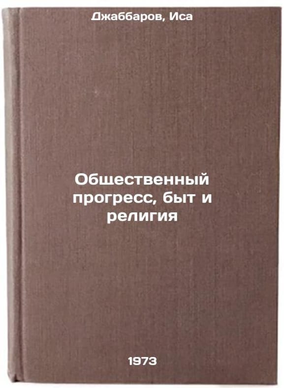 In Russian. Jabbarov, Isa. Social Progress, Life and Religion. Tashkent: Uzbekistan, 1973. Obshchestvennyy progress, byt i religiya. In Russian/Social Progress, Welfare, and Religion. All images are for identification of editions only. Several books of the same edition may be available. Please feel free to request photos of available books. SKU7108302