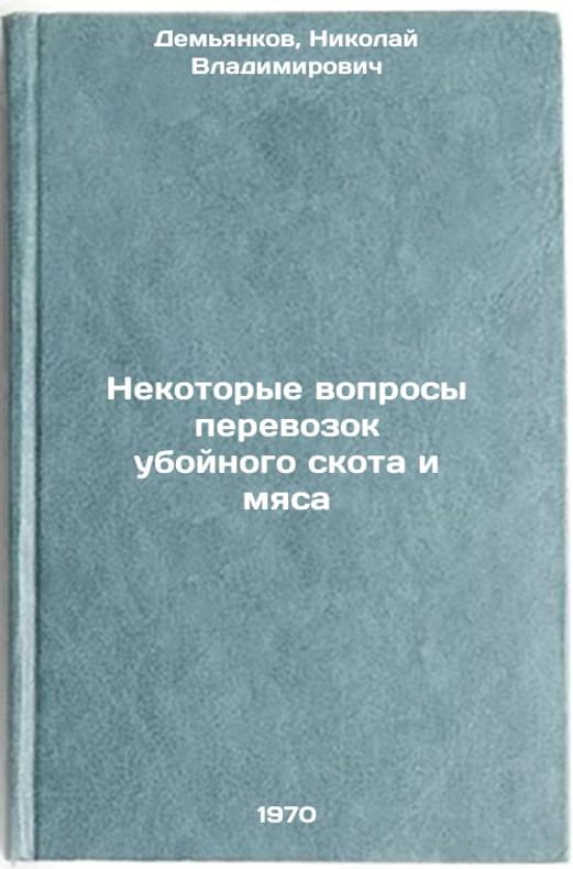 In Russian. Demyankov, Nikolai Vladimirovich. Some issues of transportation of slaughtered livestock and meat. Moscow: 1970. Nekotorye voprosy perevozok uboynogo skota i myasa. In Russian /Some transport issues for slaughtered animals and meat . All images are for identification of editions only. Several books of the same edition may be available. Please feel free to request photos of available books. SKU7108460