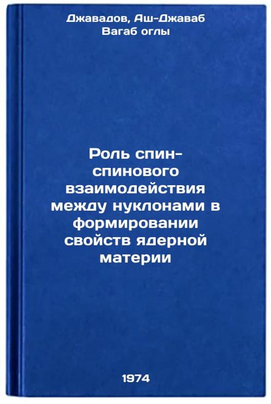 In Russian. Javadov, Ash-Javab Vagab ogly. The Role of Spin-Spin Interaction between Nuclones in the Formation of Properties of Nuclear Matter. Baku, 1974. Rol' spin-spinovogo vzaimodeystviya mezhdu nuklonami v formirovanii svoystv yadernoy materii. In Russian /The role of spin-spin interactions between nucleons in shaping the properties of nuclear matter. All images are for identification of editions only. Several books of the same edition may be available. Please feel free to request photos of available books. SKU7109697