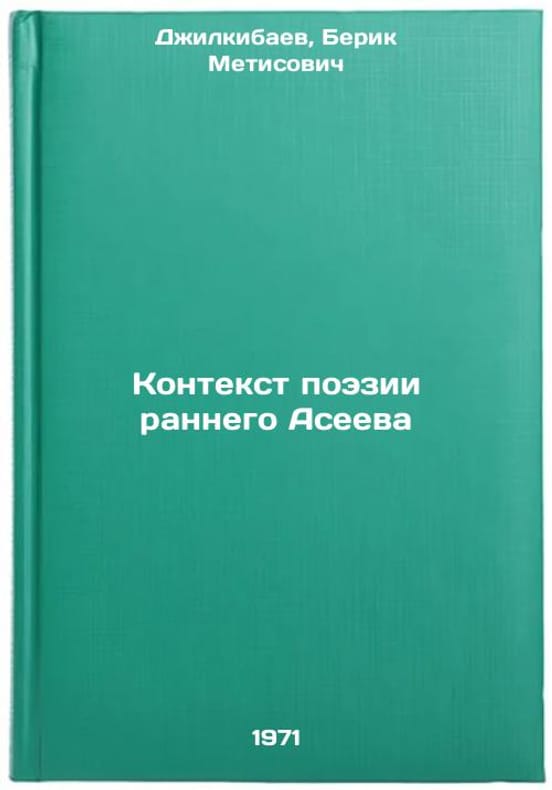 In Russian. Dzhilkibaev, Berik Metisovich. Context of the Poetry of Early Aseev. Alma-Ata: 1971. All images are for identification of editions only. Several books of the same edition may be available. Please feel free to request photos of available books. SKU7111928