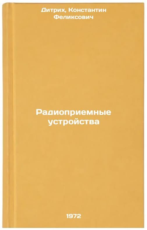 In Russian. Dietrich, Konstantin Felix. Radio Receivers. Moscow: Transport, 1972. All images are for identification of editions only. Several books of the same edition may be available. Please feel free to request photos of available books. SKU7112202