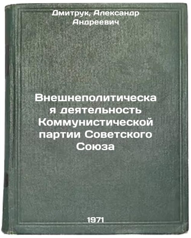 In Russian. Dmitruk, Alexander Andreevich. Foreign Policy Activities of the Communist Party of the Soviet Union. Minsk: 1971. Vneshnepoliticheskaya deyatel'nost' Kommunisticheskoy partii Sovetskogo Soyuza. In Russian /Foreign Policy Activities of the Communist Party of the Soviet Union . All images are for identification of editions only. Several books of the same edition may be available. Please feel free to request photos of available books. SKU7112875