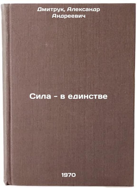 In Russian. Dmitruk, Alexander Andreevich. Power is in unity. Minsk: Belarus, 1970. All images are for identification of editions only. Several books of the same edition may be available. Please feel free to request photos of available books. SKU7112881