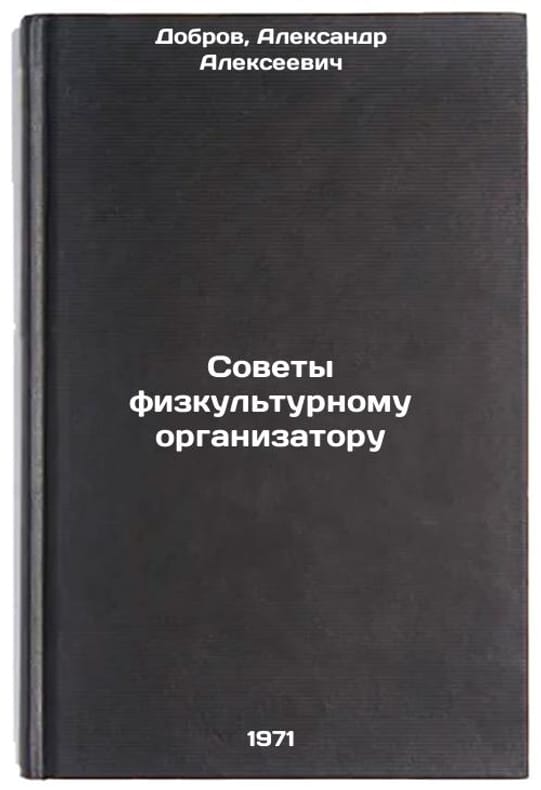 In Russian. Dobrov, Alexander Alekseevich. Advice to a Sports Organizer. Moscow: Soviet Russia, 1971. All images are for identification of editions only. Several books of the same edition may be available. Please feel free to request photos of available books. SKU7113005
