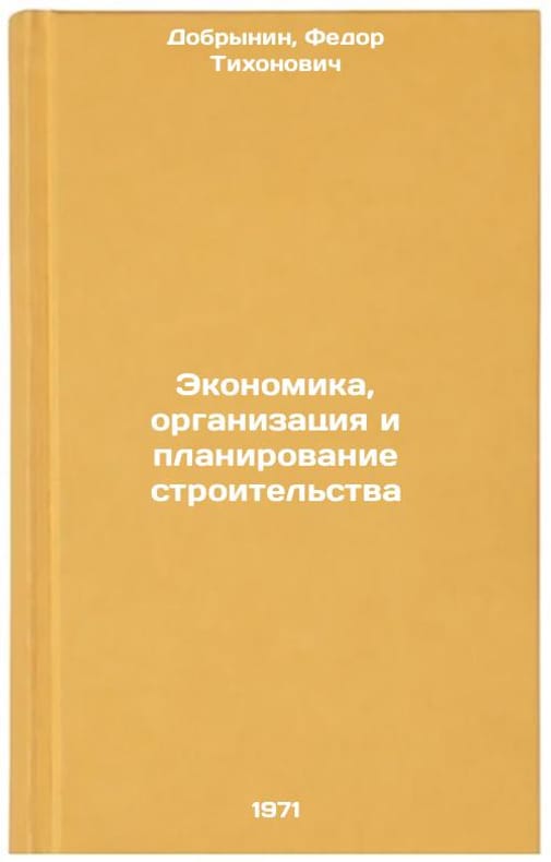 In Russian. Dobrynin, Fedor Tikhonovich. Economics, Organization and Planning of Construction. Moscow: Higher School, 1971. Ekonomika, organizatsiya i planirovanie stroitel'stva. In Russian /Construction Economics, Organization and Planning . All images are for identification of editions only. Several books of the same edition may be available. Please feel free to request photos of available books. SKU7113227