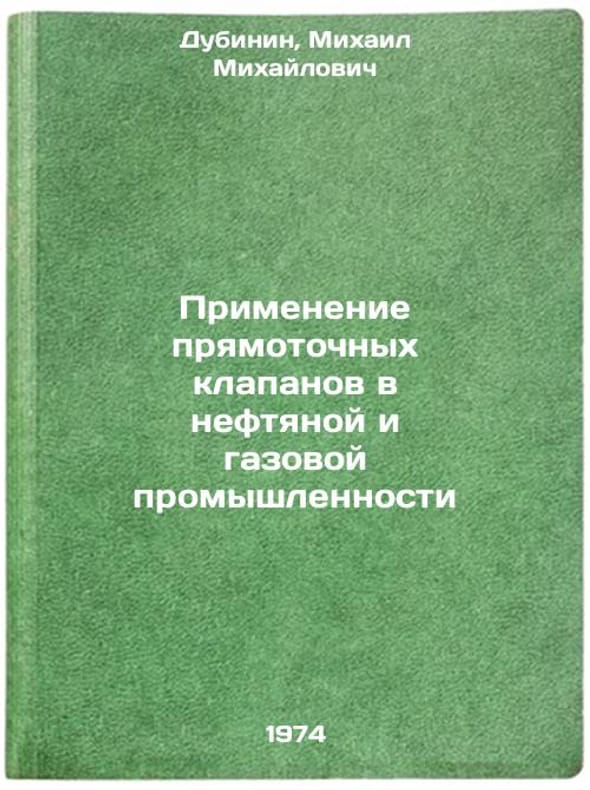 In Russian. Dubinin, Mikhail Mikhailovich. Application of rectangular valves in the oil and gas industry. Moscow: Subsoil, 1974. Primenenie pryamotochnykh klapanov v neftyanoy i gazovoy promyshlennosti. In Russian /Application of rectangular valves in the oil and gas industry. All images are for identification of editions only. Several books of the same edition may be available. Please feel free to request photos of available books. SKU7116985