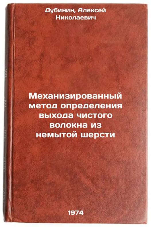 In Russian. Dubinin, Alexey Nikolaevich. A mechanized method for determining the yield of pure fibres from unwashed wool. Moscow: 1974. Mekhanizirovannyy metod opredeleniya vykhoda chistogo volokna iz nemytoy shersti. In Russian /Mechanized method for determining the yield of pure fibres from unwashed wool. All images are for identification of editions only. Several books of the same edition may be available. Please feel free to request photos of available books. SKU7117458
