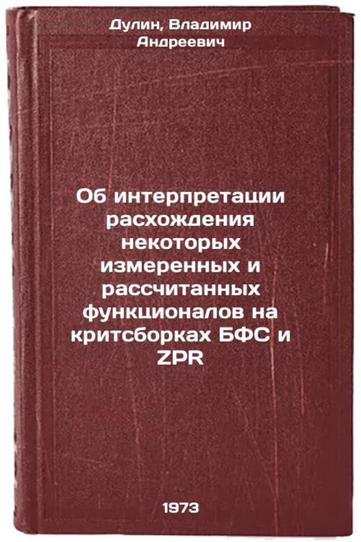 In Russian. Dulin, Vladimir Andreevich. On the interpretation of the divergence of some measured and calculated functionalities on the BFS and ZPR kritsassemblies. Obninsk: 1973. Ob interpretatsii raskhozhdeniya nekotorykh izmerennykh i rasschitannykh funktsionalov na kritsborkakh BFS i ZPR. In Russian/On the interpretation of the divergence of certain measured and calculated functions on the BFS and ZPR cryptoassemblies. All images are for identification of editions only. Several books of the same edition may be available. Please feel free to request photos of available books. SKU7118013