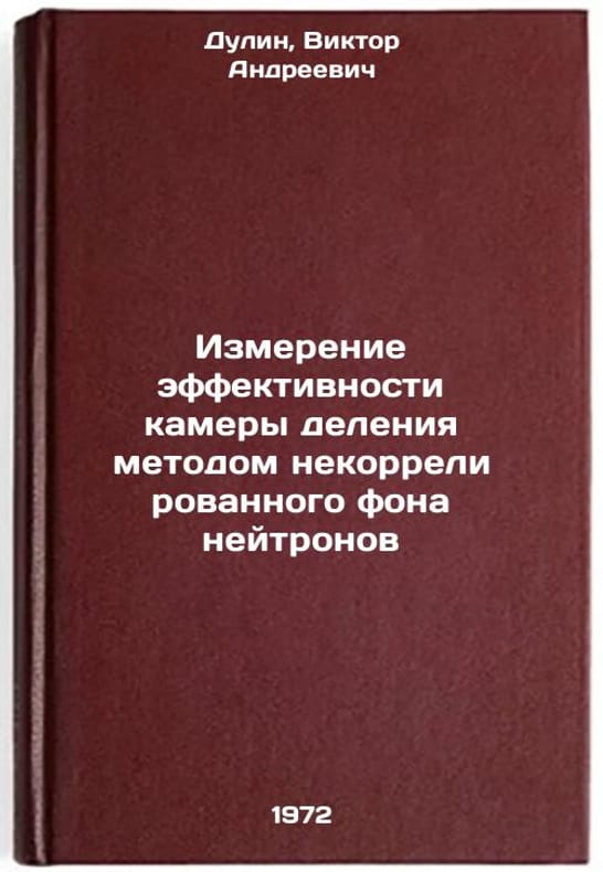 In Russian. Dulin, Viktor Andreevich. Measurement of the efficiency of the fission chamber by the method of uncorrelated neutron background. Obninsk: 1972. Izmerenie effektivnosti kamery deleniya metodom nekorrelirovannogo fona neytronov. In Russian/Measurement of the efficiency of the fission chamber by an uncorrelated neutron background. All images are for identification of editions only. Several books of the same edition may be available. Please feel free to request photos of available books. SKU7118131