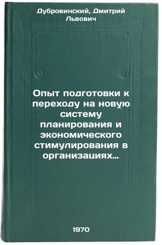 In Russian. Dubrovinsky, Dmitry Lvovich. Experience in preparing for the transition to a new system of planning and economic incentives in the organizations of the Volga-Don Geological Administration. Moscow: 1970. Opyt podgotovki k perekhodu na novuyu sistemu planirovaniya i ekonomicheskogo stimulirovaniya v organizatsiyakh Volgo-Donskogo geologicheskogo upravleniya. In Russian /Experience in preparing for the transition to a new system of planning and economic incentives in the organizations of the Volga-Don Geological Administration . All images are for identification of editions only. Several books of the same edition may be available. Please feel free to request photos of available books. SKU7118794