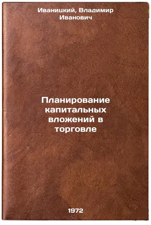In Russian. Ivanitsky, Vladimir Ivanovich. Capital Investment Planning in Trade. Moscow: Economics, 1972. All images are for identification of editions only. Several books of the same edition may be available. Please feel free to request photos of available books. SKU7119774