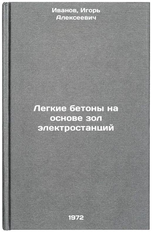 In Russian. Ivanov, Igor Alekseevich. Light concrete based on ash from power plants. Moscow: Stroyizdat, 1972. Legkie betony na osnove zol elektrostantsiy. In Russian/Light concrete based on ash from power plants. All images are for identification of editions only. Several books of the same edition may be available. Please feel free to request photos of available books. SKU7120654