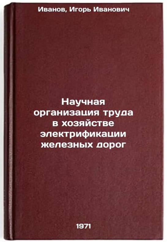 In Russian. Ivanov, Igor Ivanovich. Scientific Organization of Labor in Railway Electrification. Moscow: Transport, 1971. Nauchnaya organizatsiya truda v khozyaystve elektrifikatsii zheleznykh dorog. In Russian /Scientific Organization of Work in Railway Electrification . All images are for identification of editions only. Several books of the same edition may be available. Please feel free to request photos of available books. SKU7120660