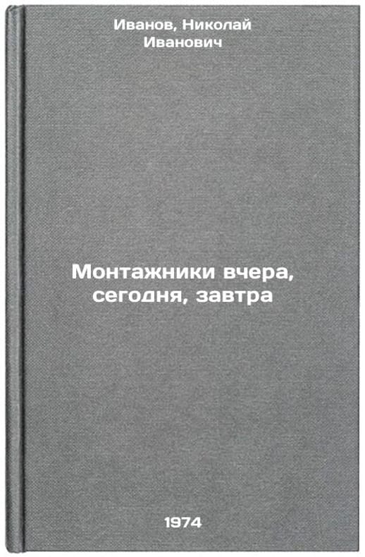 In Russian. Ivanov, Nikolai Ivanovich. Installers yesterday, today, tomorrow. Chelyabinsk: Yuzhno-Ural book-edition, 1974. Montazhniki vchera, segodnya, zavtra. In Russian /Installers yesterday, today, tomorrow. All images are for identification of editions only. Several books of the same edition may be available. Please feel free to request photos of available books. SKU7120825