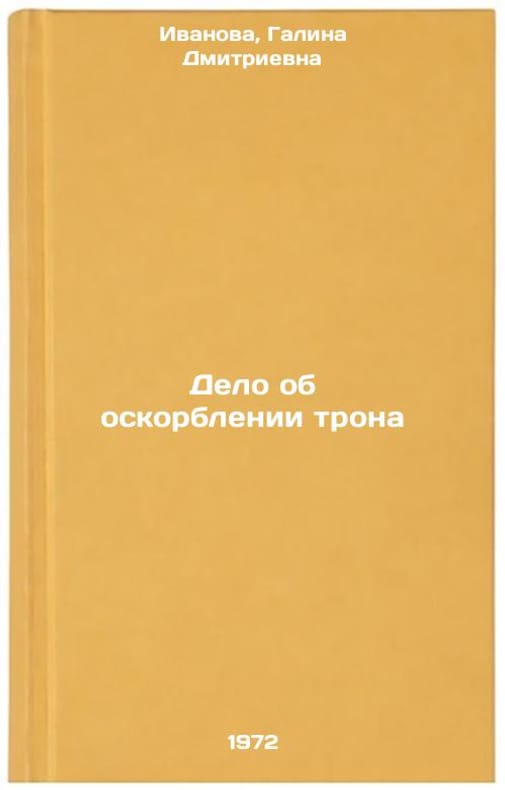 In Russian. Ivanova, Galina Dmitrievna. Case of Insulting the Throne. Moscow: Science, 1972. All images are for identification of editions only. Several books of the same edition may be available. Please feel free to request photos of available books. SKU7121217