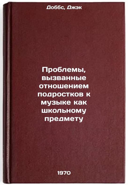 In Russian. Dobbs, Jack. Problems caused by teenagers attitude towards music as a school subject. Moscow: 1970. Problemy, vyzvannye otnosheniem podrostkov k muzyke kak shkol'nomu predmetu. In Russian /Problems caused by the attitude of adolescents towards music as a school subject . All images are for identification of editions only. Several books of the same edition may be available. Please feel free to request photos of available books. SKU7123258