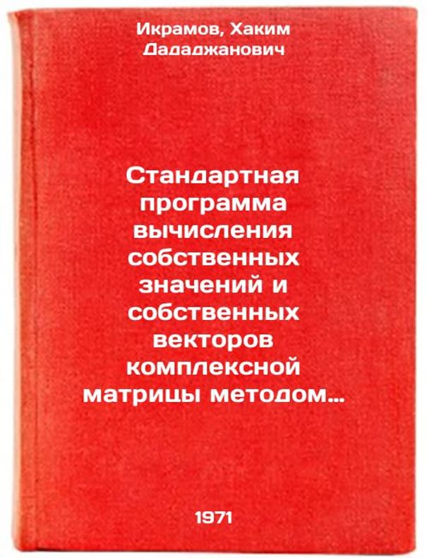 In Russian. Ikramov, Hakim Dadadzhanovich. Standard Program for Calculating Own Values and Own Vectors of a Complex Matrix by Jacobi Method (SP-3224). Moscow: 1970 oblast. 1971. Standartnaya programma vychisleniya sobstvennykh znacheniy i sobstvennykh vektorov kompleksnoy matritsy metodom Yakobi (SP-3224). In Russian /Standard program for calculating own values and own vectors of complex matrix by Jacobi method (SP-3224) . All images are for identification of editions only. Several books of the same edition may be available. Please feel free to request photos of available books. SKU7124233