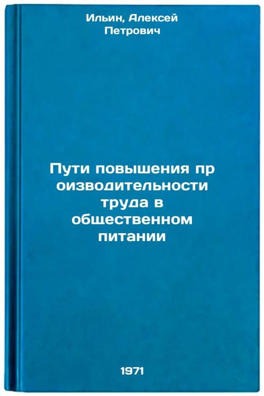 In Russian. Ilyin, Alexey Petrovich. Ways to Increase Labor Productivity in Public Catering. Moscow: Economics, 1971. Puti povysheniya proizvoditel'nosti truda v obshchestvennom pitanii. In Russian /Ways to Increase Productivity in Public Eating . All images are for identification of editions only. Several books of the same edition may be available. Please feel free to request photos of available books. SKU7124432